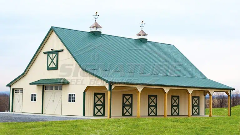 At Signature Steel Buildings, we specialize in crafting premium metal buildings designed to stand the test of time. Our metal buildings offer unmatched durability, versatility, and aesthetic appeal, making them perfect for a wide range of applications. Whether you need a storage space, workshop, or custom solution, our metal buildings are engineered to withstand the elements while maintaining their structural integrity. With customizable designs and sizes, we ensure every structure meets your unique needs and style preferences.
